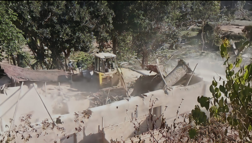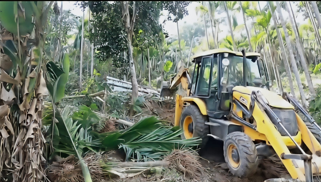 Evictions were conducted in sectors 5, 6 and 7 on the first day, while operations continued in sectors 1, 2, 3 and 4 on Tuesday. Several bulldozers and excavators were deployed to demolish illegal structures and clear large stretches of areca nut plantations.