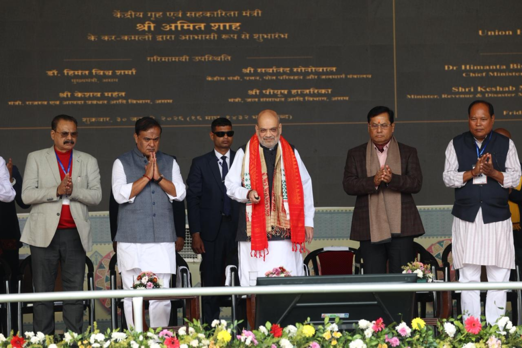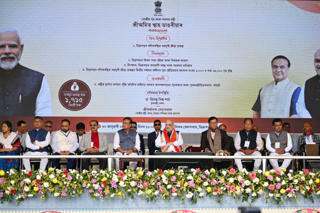 Union Home Minister lays foundation for new Assembly complex and inaugurates Assam’s largest sports facility, reinforcing plans to strengthen governance and infrastructure across Upper Assam