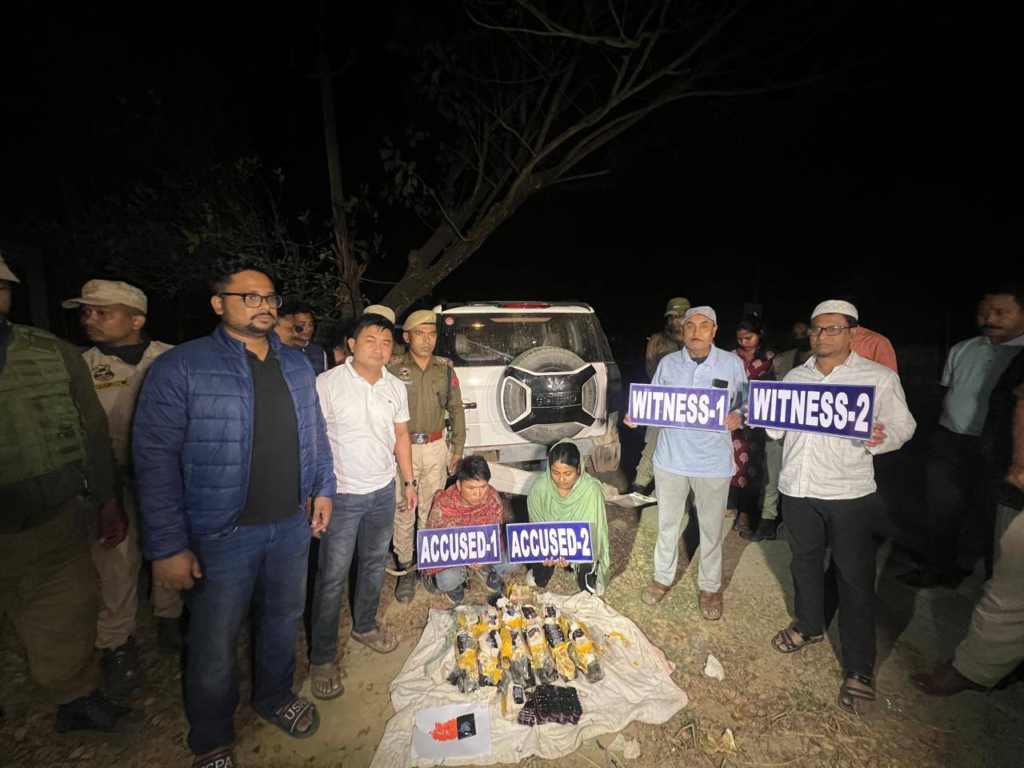 The accused, identified as Mercy Pillei and Thongjagin Haokip, were intercepted while moving suspiciously in a Mahindra TUV vehicle at Bowarghat Part 1 in Hailakandi district, Assam. Upon searching the vehicle, police discovered 1,21,000 Yaba tablets packed in 12 packets and concealed inside a specially constructed secret chamber.