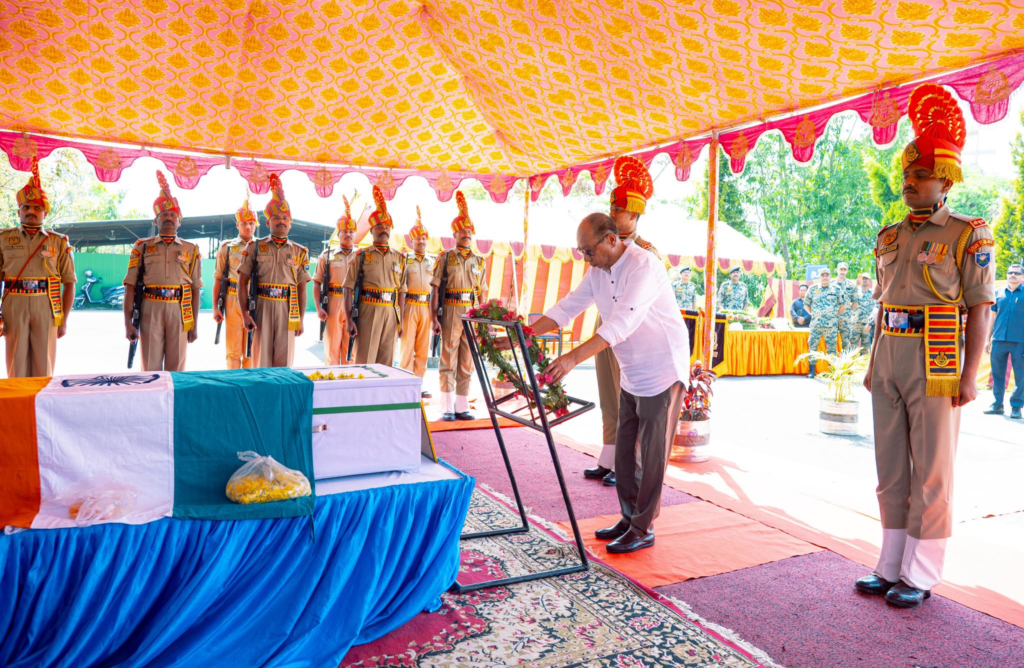 The Chief Minister also attended a wreath-laying ceremony at Imphal airport to honour BSF constable Mithun Mandal, who was martyred during a firing incident involving armed groups in Ukhrul district on Friday. Senior officials, including the state’s Director General of Police and the security advisor, were present on the occasion.