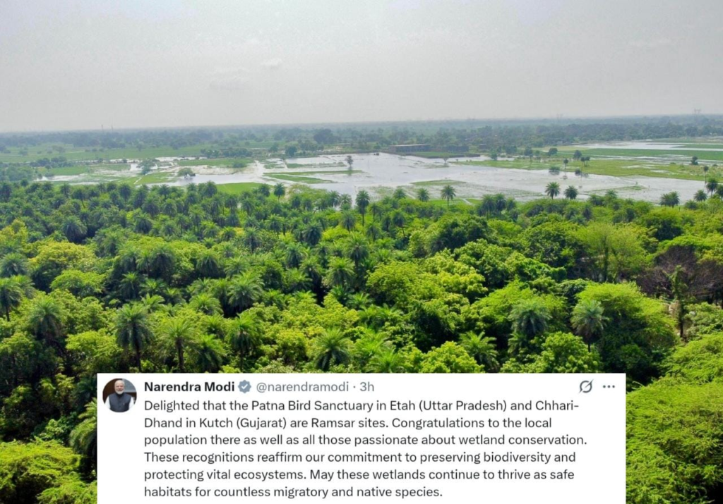 Prime Minister Narendra Modi welcomed the recognition and congratulated local communities and conservationists. In a message on ‘X’, he wrote, “Delighted that the Patna Bird Sanctuary in Etah (Uttar Pradesh) and Chhari-Dhand in Kutch (Gujarat) are Ramsar sites. Congratulations to the local population there as well as all those passionate about wetland conservation. These recognitions reaffirm our commitment to preserving biodiversity and protecting vital ecosystems. May these wetlands continue to thrive as safe habitats for countless migratory and native species.”