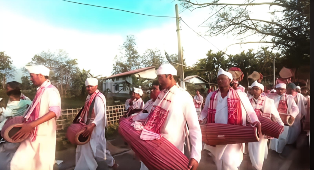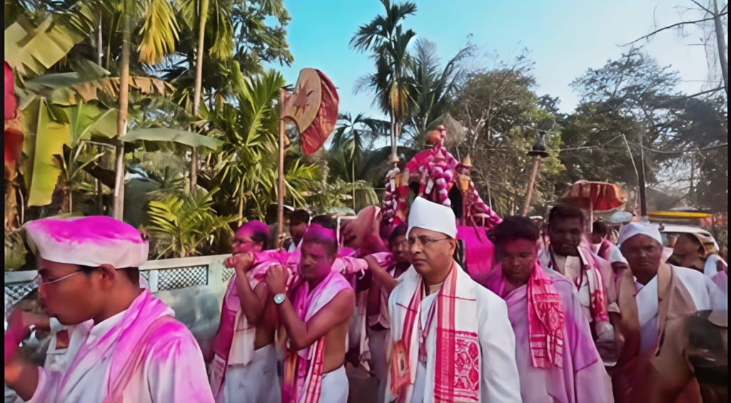 The shrine echoed with the rhythmic beats of Gayan-Bayan, devotional chants, and traditional instruments, creating a spiritually uplifting atmosphere. Devotees seated Banshi Gopal Goxai on the throne and carried him on their shoulders from the Rabhatal in a vibrant procession accompanied by conch shells, naam-kirtan, and folk performances.